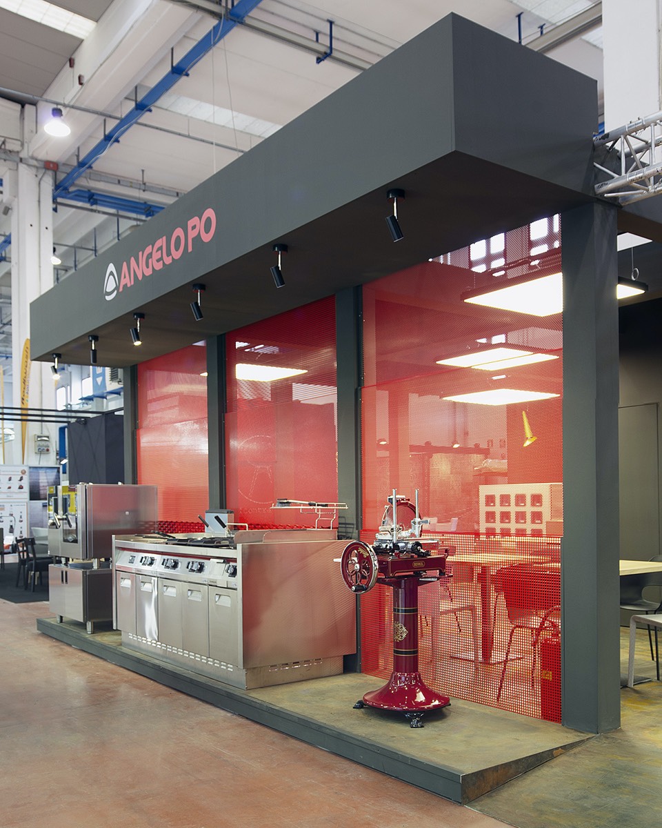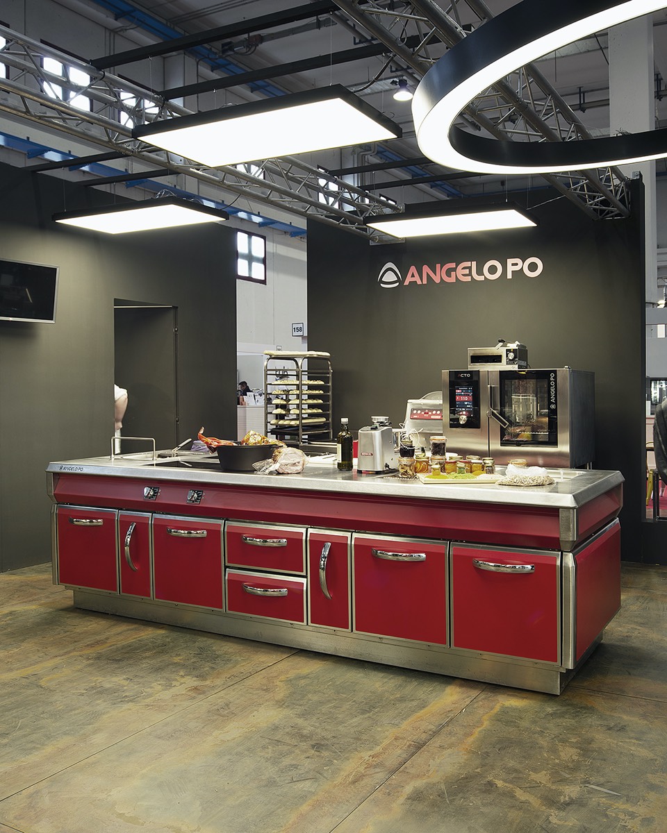 Il progetto di stand fieristico per Ristorexpo Montichiari in provincia di Brescia ha richiesto una progettazione su misura per esprimere al meglio l’immagine del nostro cliente, in collaborazione con Angelo PO’ Grandi Cucine. Design Metre ha creato un ambiente distintivo che ha saputo attrarre l’attenzione dei visitatori, grazie a un design studiato nei minimi dettagli, che univa estetica e funzionalità.